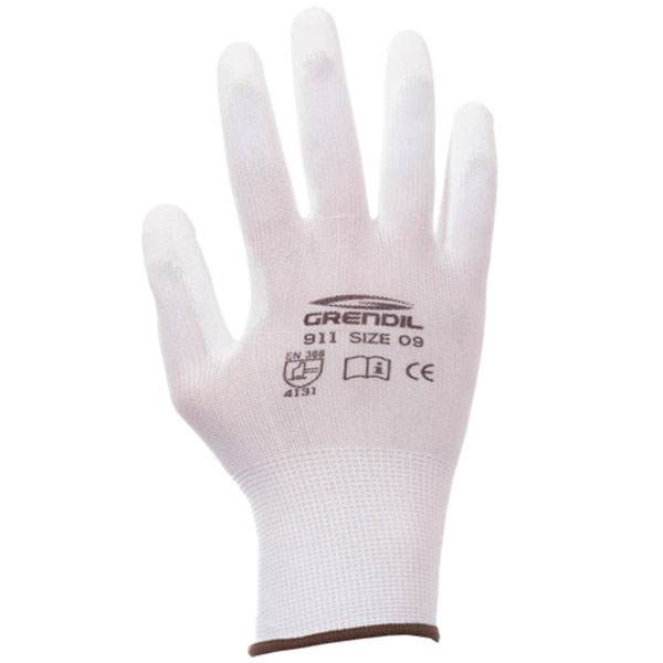 Guante de poliester con poliuretano en la palma color blanco
