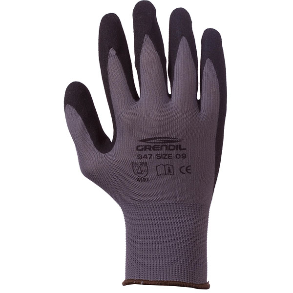 Guante de nylon con nitrilo arenado en la palma