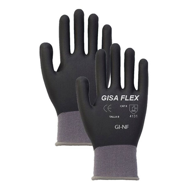 Guante de nylon gris recubrimiento en palma y dorso de nitrilo micro espumado.